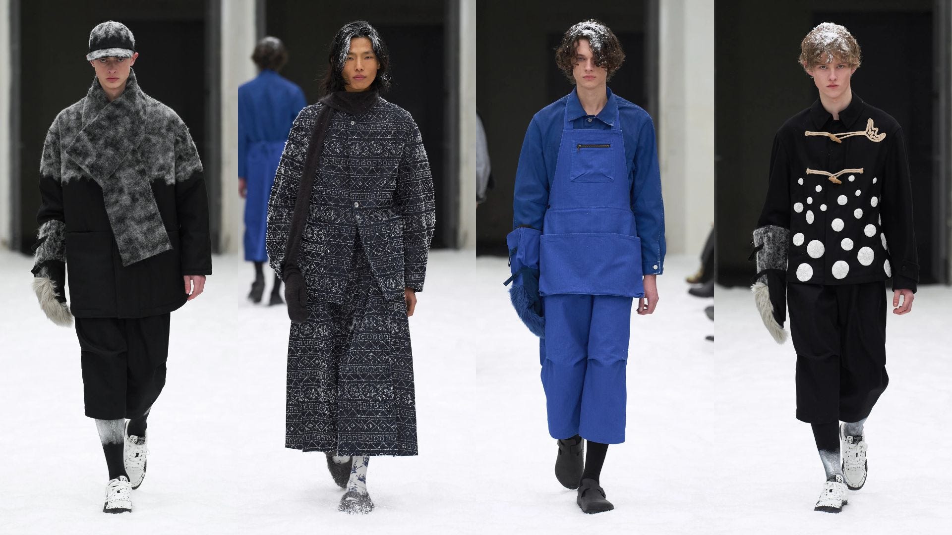 In the past I’ve sometimes found his collections a little chaotic, but this was his most cohesive yet. Shinya’s work is always very sensitive and romantic; he’s a painter, really, as much as he is a designer, which is why his clothes are often covered in illustrations. The baggy and feminine silhouettes, the skirt-like pants, the soft-looking workwear… If you want an idea of how sensitive and fashionable Gen Z men are dressing on the streets of Tokyo right now, this is it.
