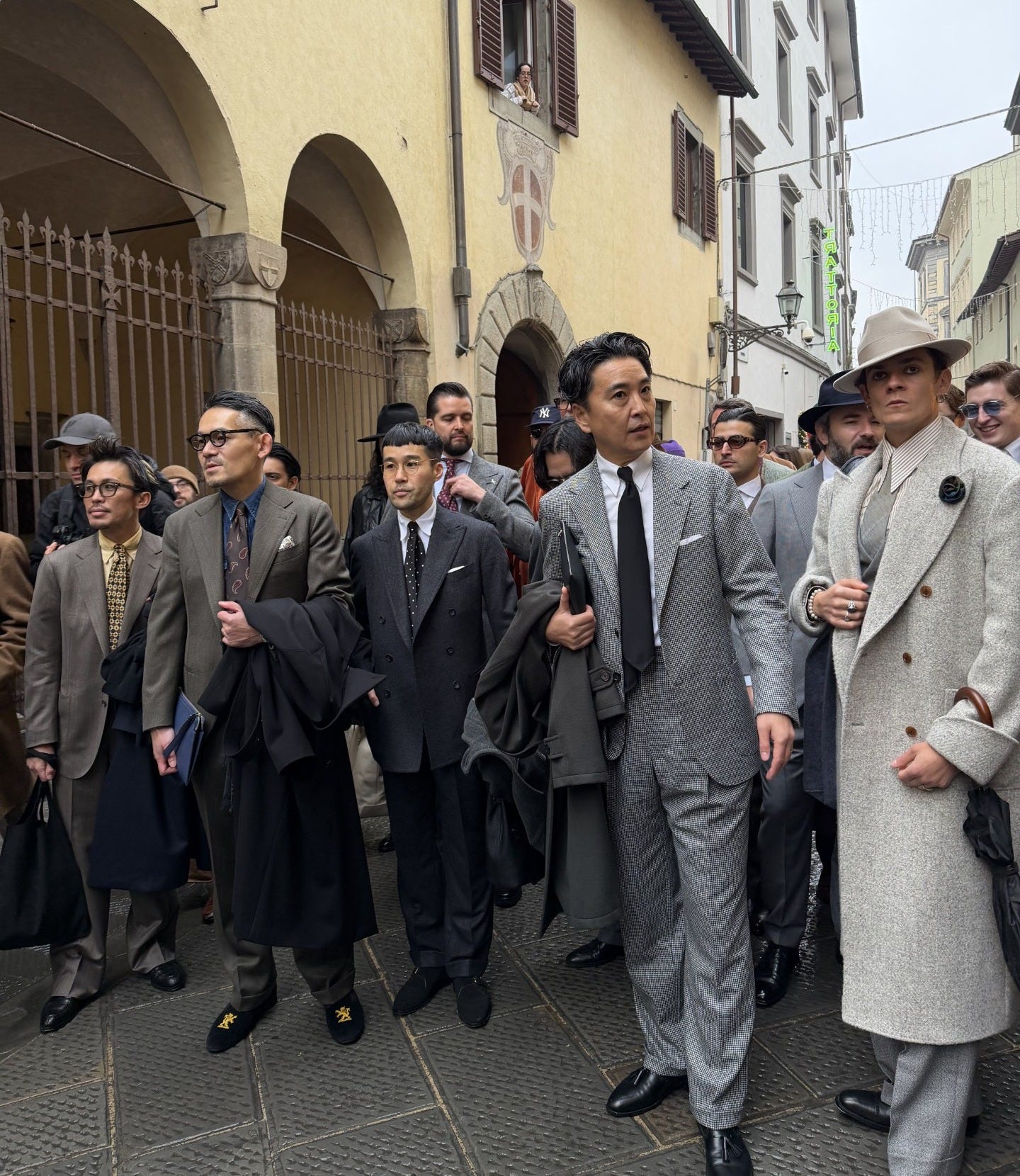 It was both Shinya and Soshi’s first time showing outside of Tokyo, which is a big deal. Almost every designer I speak to in Japan says that they want to show abroad; I hear it so often that I think yeah, sure, I’ll believe it when I see it. But then boom, it happens. Soshi and Shinya are part of the next generation of Japanese designers that, though totally different from each other, are defining a new chapter of menswear. It’s hard to overstate how hard they have worked for moments like this, and it was incredibly moving to see them both get their flowers in Florence.